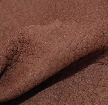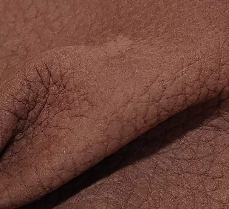 This leather has a subtle mix of two shades of the same colour, giving it personality. The feel is suede. Light and abrasion resistance is very good. Produced on European bulls.