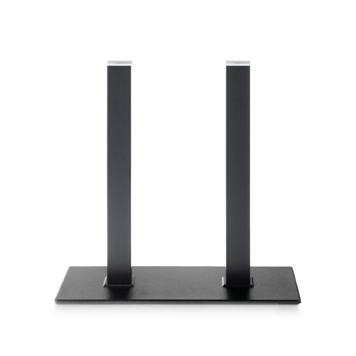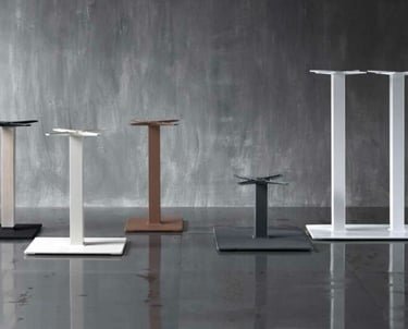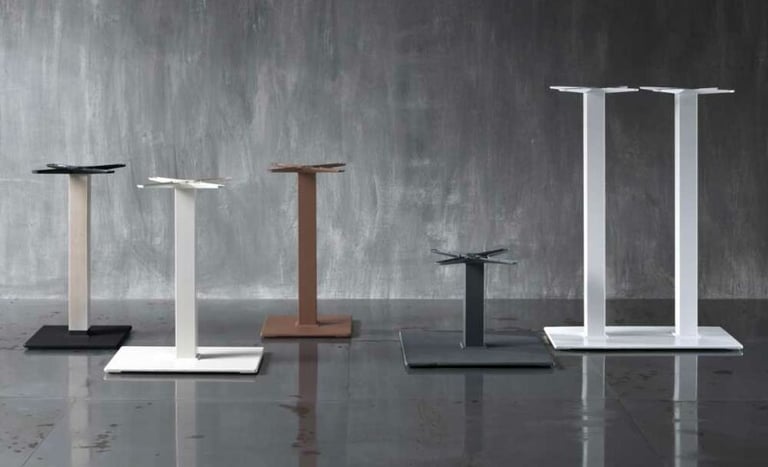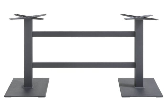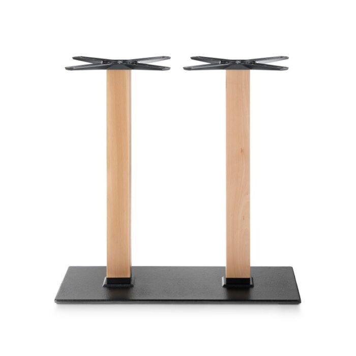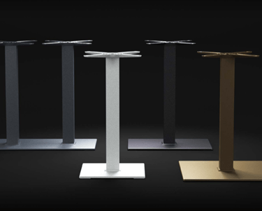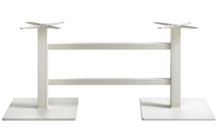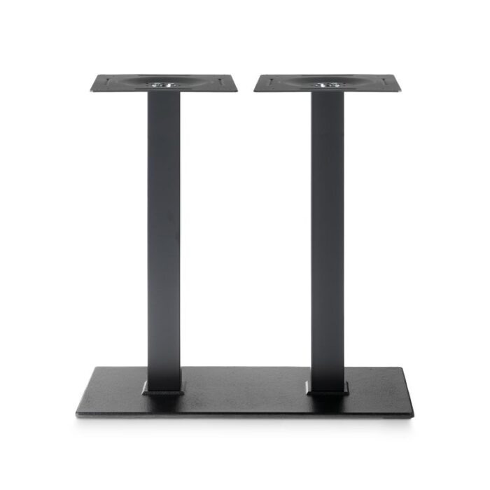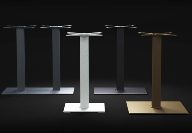 Rectangular base in cast iron with four ABS feet. Provided with two painted steel column and our die-cast aluminum “Star” top fixing crosses. Suitable for different shapes and colors tops, its clean line and regular proportions make it very versatile for contract use and perfect for many spaces as restaurants, bistro, bars, pubs, cafès…