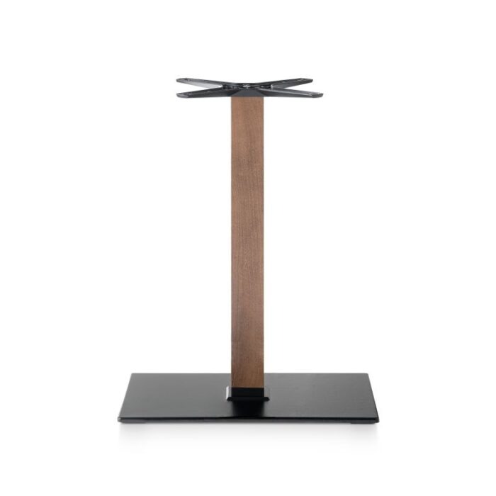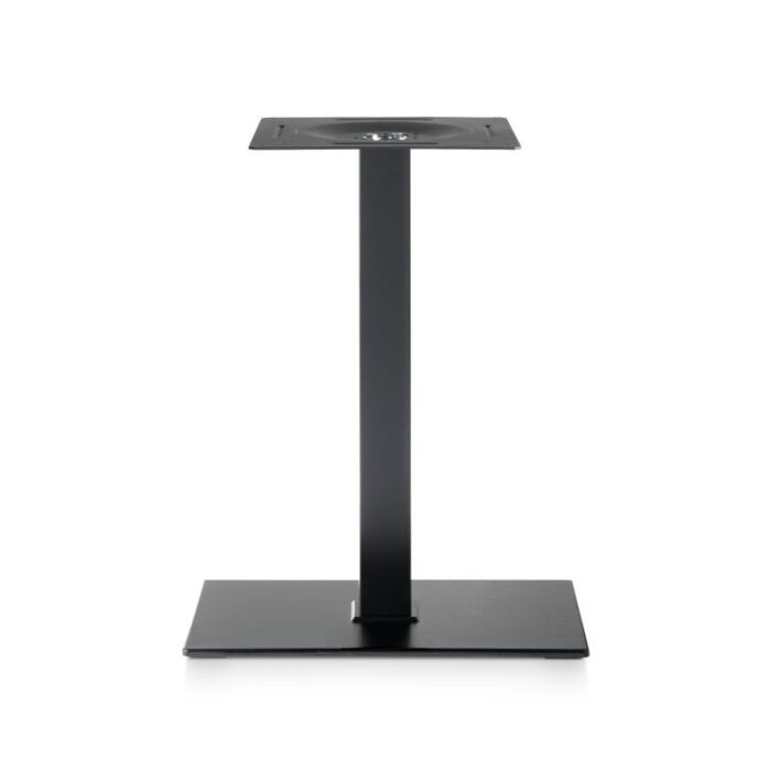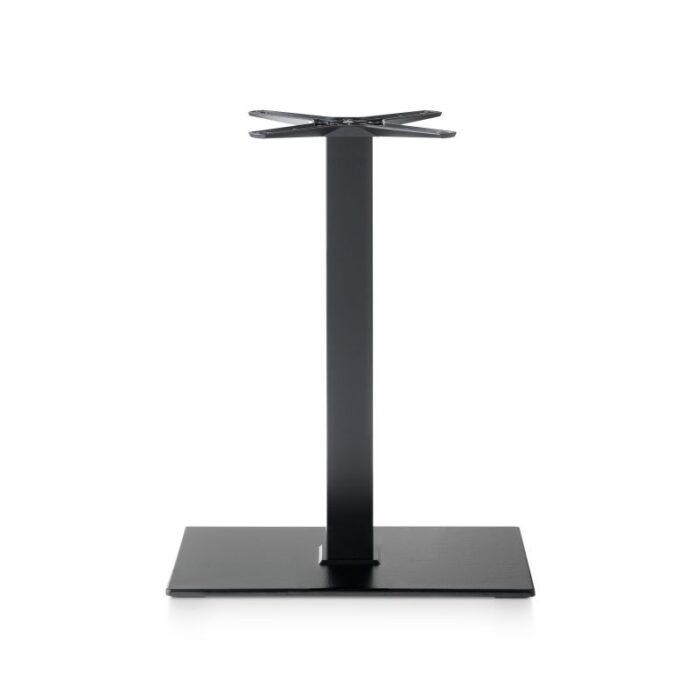 Squared base in cast iron with four ABS feet. Provided with painted steel column and our die-cast aluminum “Star” top fixing cross. Suitable for different shapes and colors tops, its clean line and regular proportions make it very versatile for contract use and perfect for many spaces as restaurants, bistro, bars, pubs, cafès…