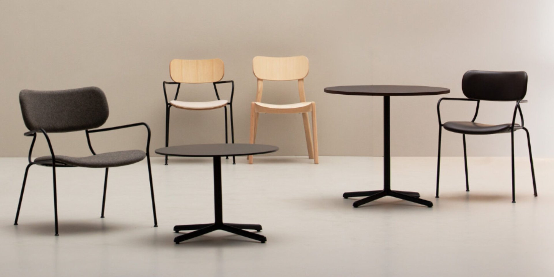 Lounge chair with 4-legs painted steel frame and painted or open-pore laquered ash veneered plywood seat and backrest. Available accessory: upholstered fixed cushion.