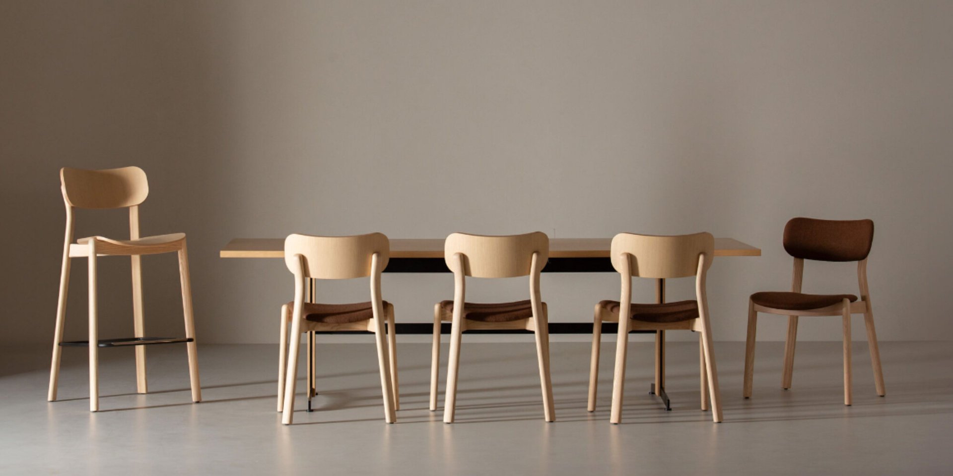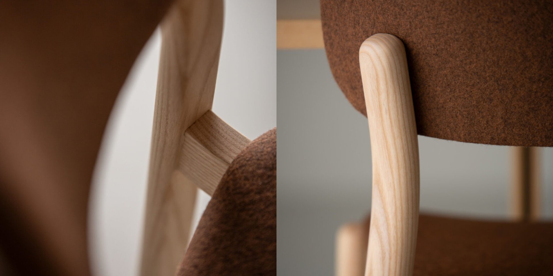Chair with solid ash frame, upholstered seat and ash plywood backrest.