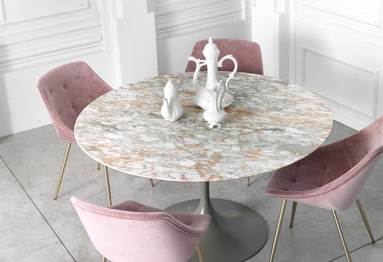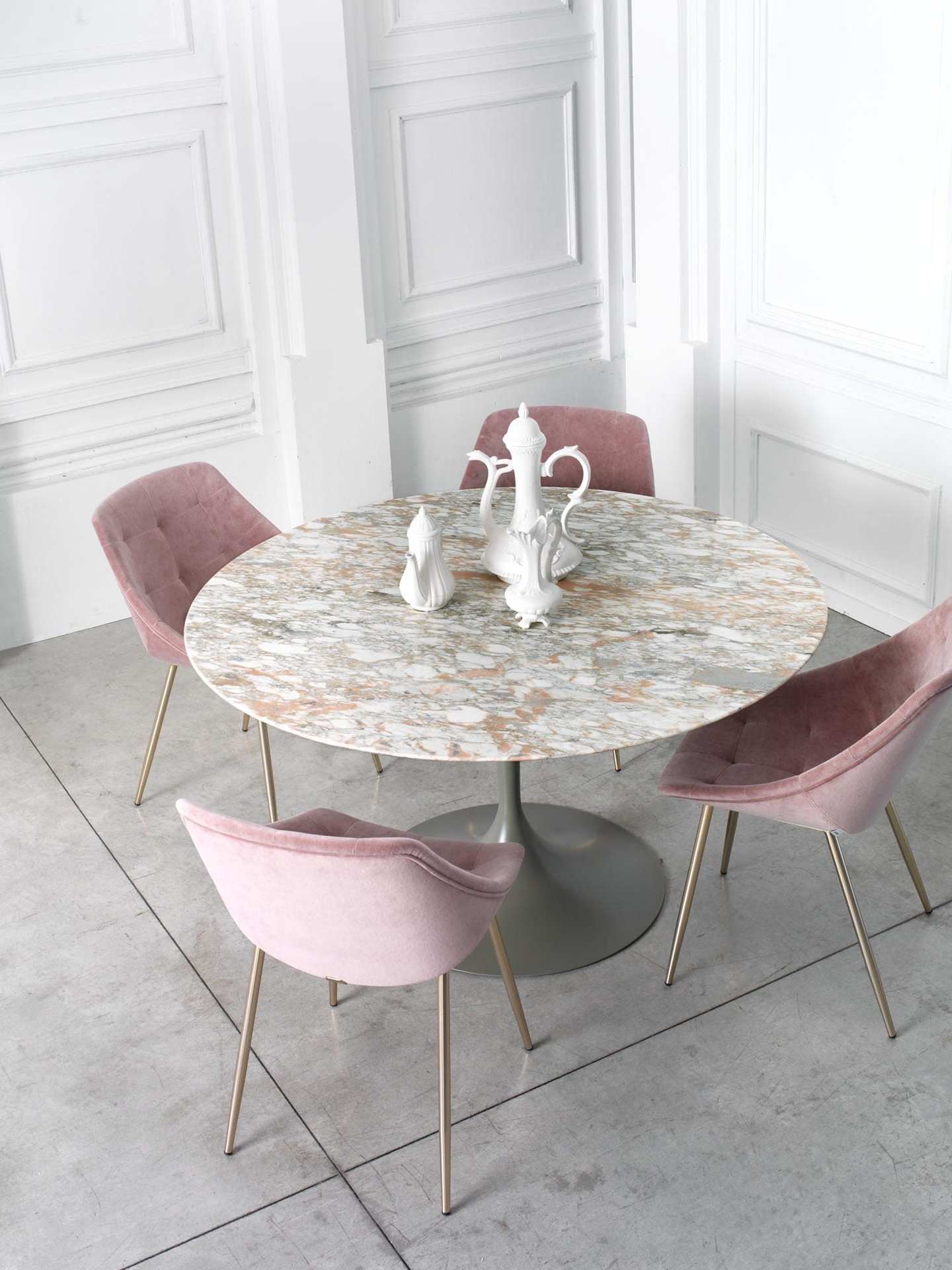 Volo is NFK’s table with a bell-shaped base, characterized by a sculptural design that soars upward with a curvilinear silhouette, flowing into a circular top of great visual impact. Thanks to its customization possibilities, Volo adapts to any aesthetic and functional requirement: it is possible to choose among different colors, finishes, dimensions and materials, making it an extremely versatile furnishing accessory. Perfect for decorating exclusive environments, both residential and contract, Volo combines iconic design and refined elegance.