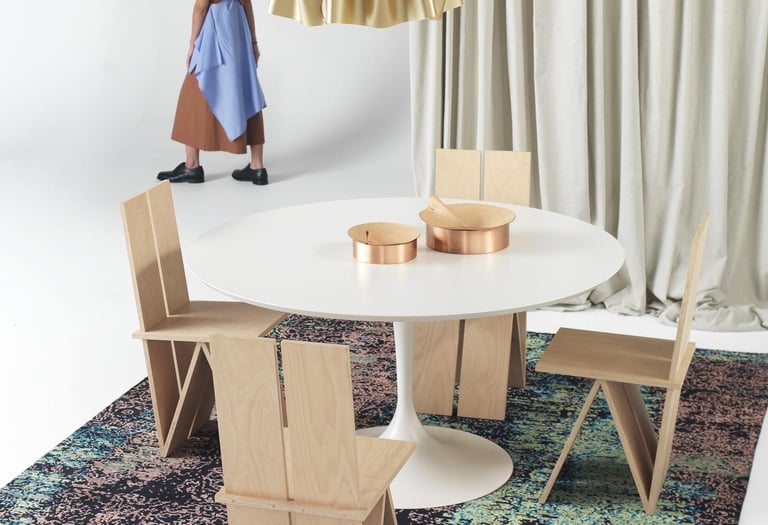 MDF round top, chamfered edge 45 mm, matte lacquered. Thickness 20 mm, diameter 1400 mm.