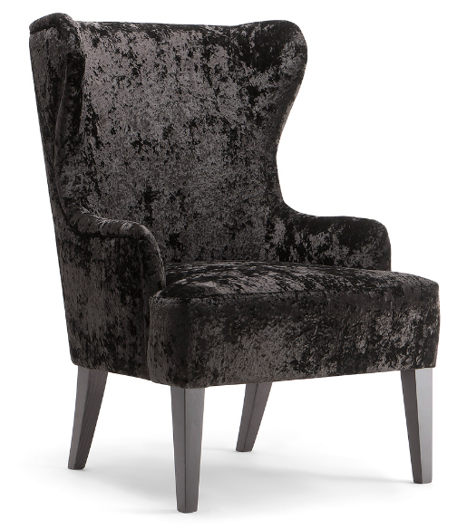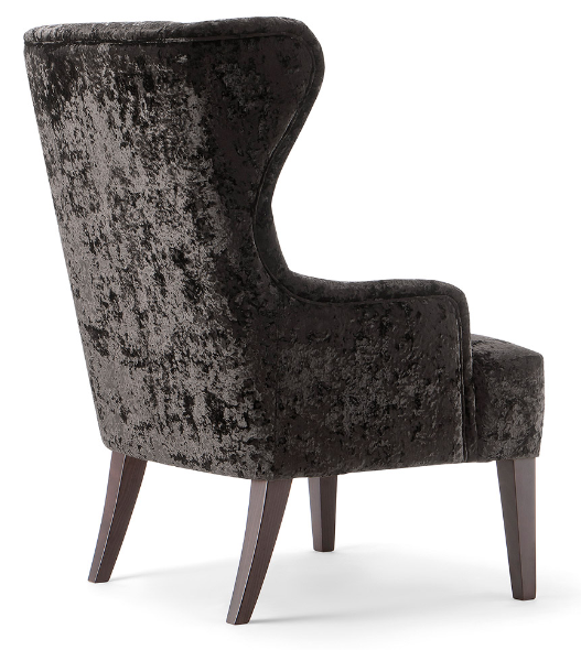 The modern and unique Rouche high back chair showcases a contemporary design with subtle retro styling. The Rouche design follows low relaxed armrests, a supportive but modern wing back and optional loose cushion. Upholstered in a variety of different fabrics to complement solid wood legs and frame, this chair is ideal for plush lounges, corporate lobbies and design focused guest rooms.