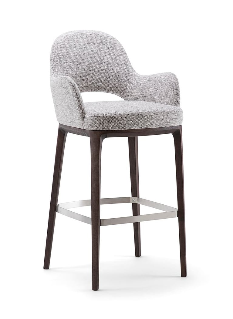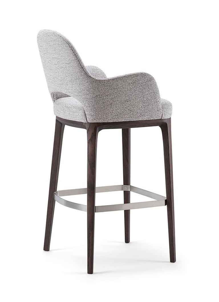 Barstool that combines comfort and style, with elegant solid wood details and refined upholstery.